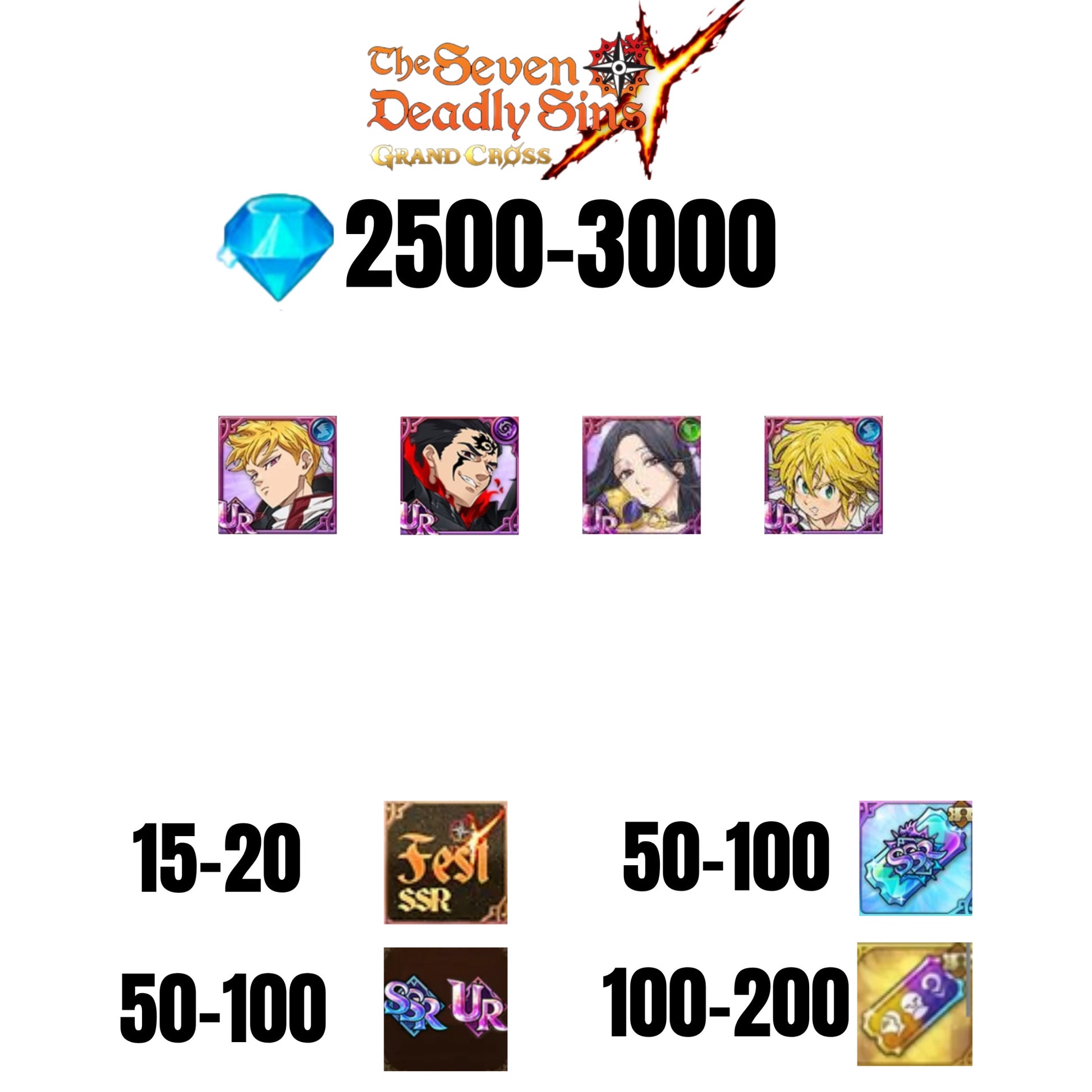 [GLOBAL] 2500-3000 GEMS | ZELDRIS DEMON KING NEW | SKULD | LANCELOT | MELIODAS DEMON KING UR | COCTYUS | 15-20 FEST | 50-100 UR/SSR | 50-100 TICKET SSR