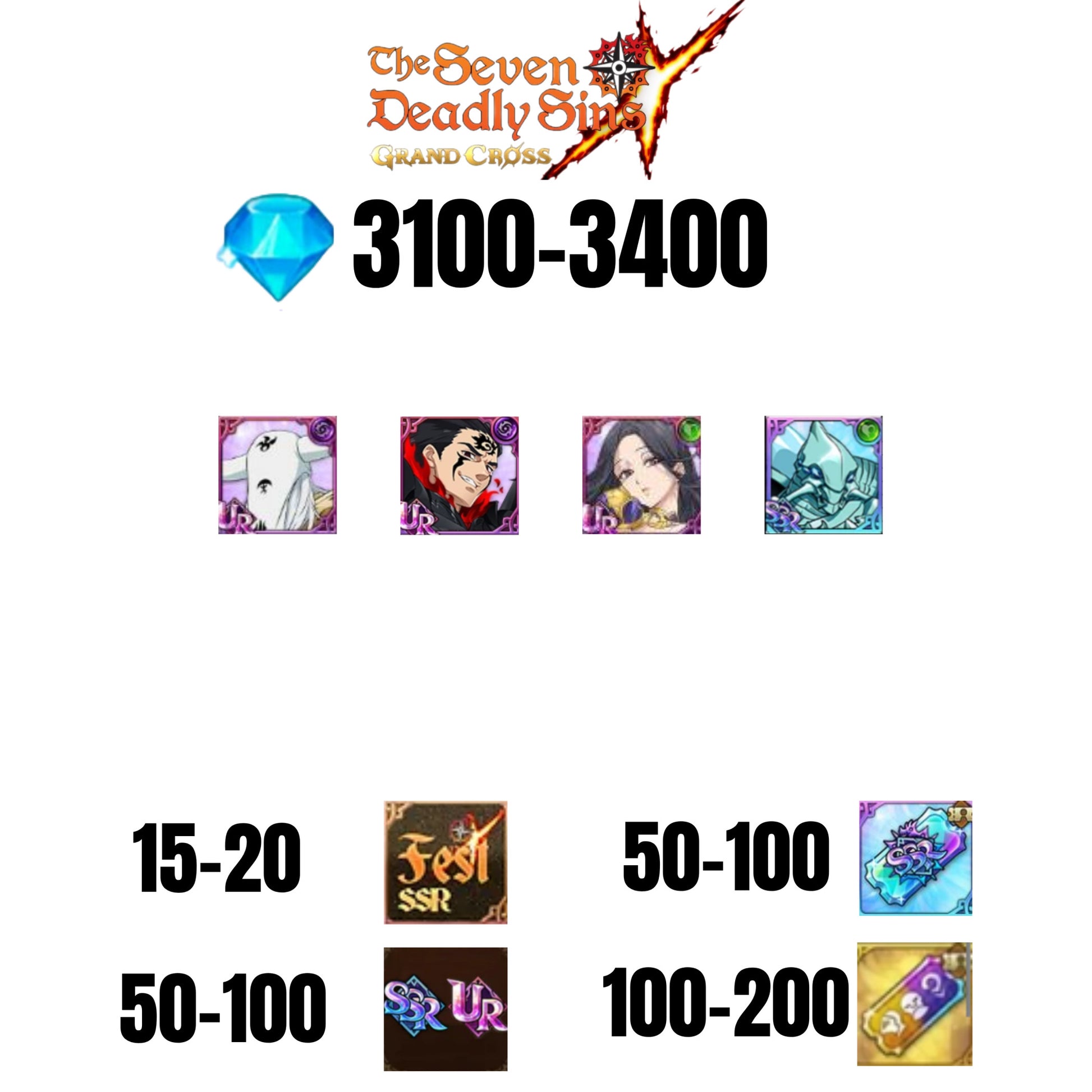 [GLOBAL] 3100-3400 GEMS | ZELDRIS DEMON KING NEW | SKULD | MAEL DARK | COCTYUS | 15-20 FEST | 50-100 UR/SSR | 50-100 TICKET SSR
