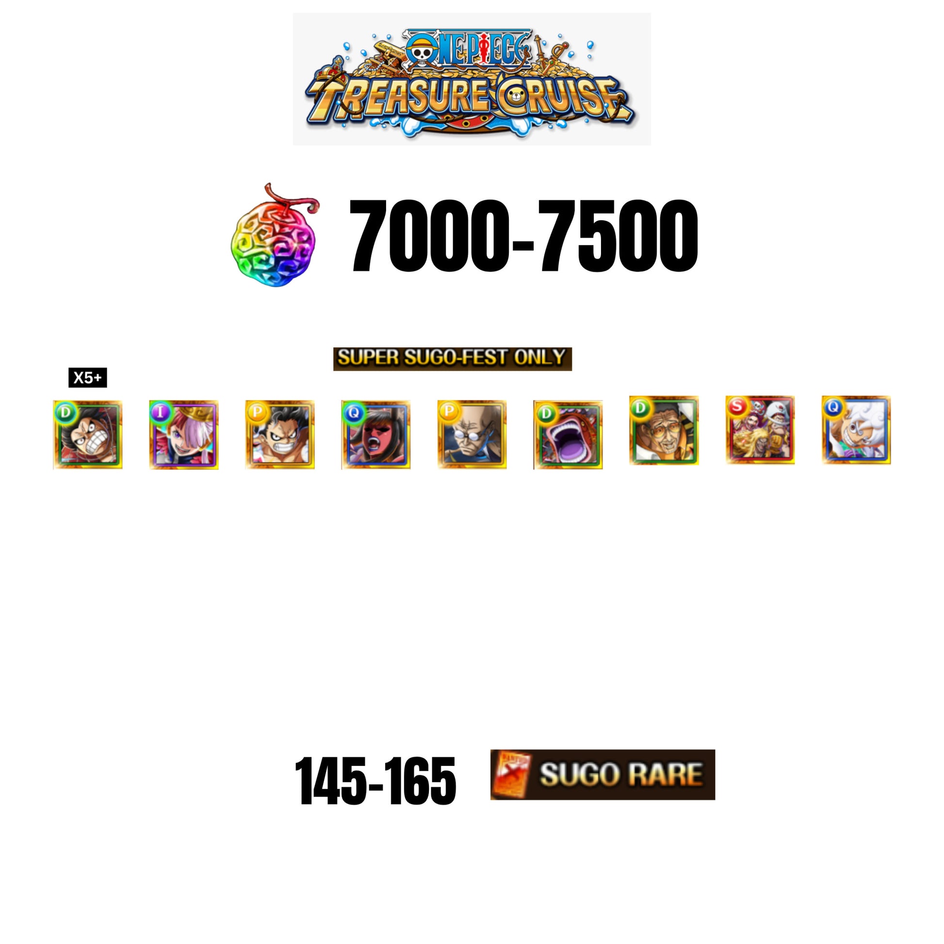 [GLOBAL][ANDROID] 7000-7500 GEMS| Luffy gear 5 new | st. Shepherd Ju Peter | st. Ethanbaron V. Nusjuro | 9 SUPER SUGO FEST CHARACTERS | 145-165 SUGO FEST CHARACTERS